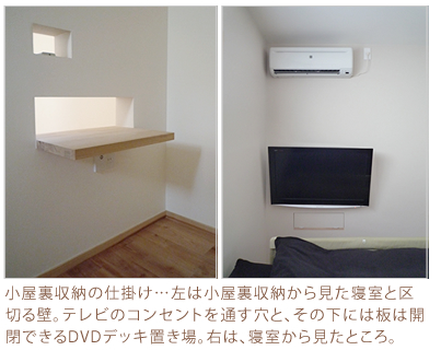「以前の家は、ハシゴ使用の小屋裏収納で物を入れっぱなしだった。 新築し、階段を使わず収納できる小屋裏にしたら極めて便利。まったく別物です」