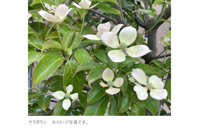 シンボルツリーとして、約8メートルのヤマボウシを植えました。そのほかにアオダモを2本植えました