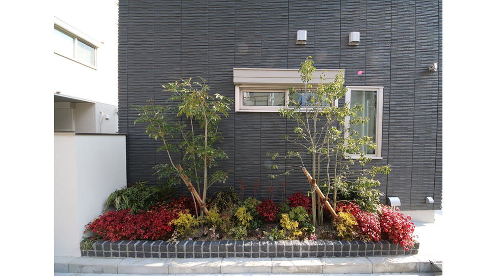 家の側面に花壇を設置しました。やはり、緑があると気分が落ち着き、家が映えて見える気がします。