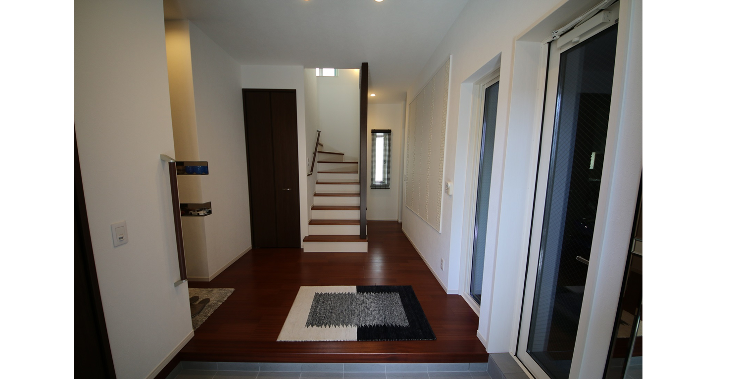 玄関マット。ハウスメーカーの展示会で家の外観と同じ柄だったのを一目ぼれし購入した。