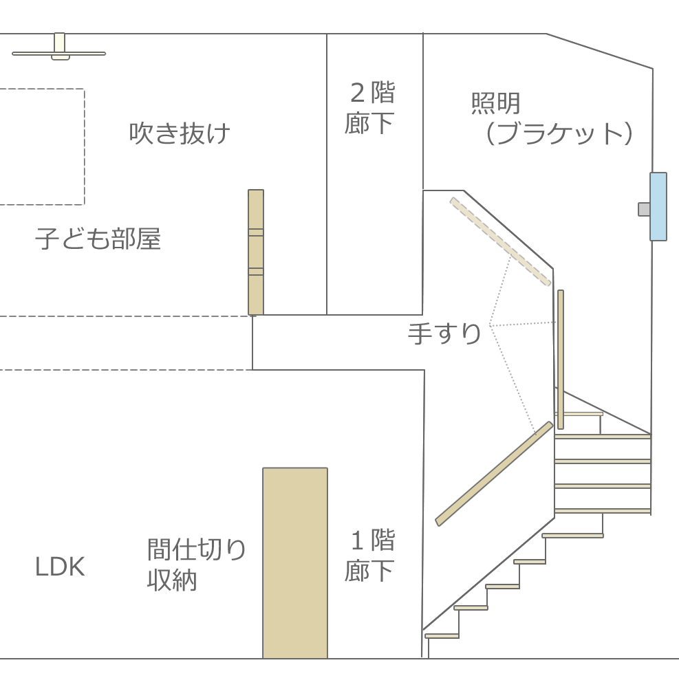 しかし、やはり寝起きで子どもを抱えて降りるときなどは慎重になるので、ここがフラットな踊り場であればもっと楽だったのだろうなと思うことはあります。階段を広く取れる場合は、ぜひ折り返し階段をおすすめします。